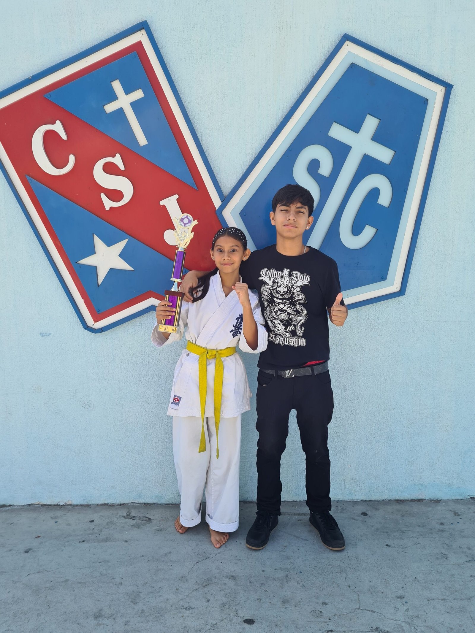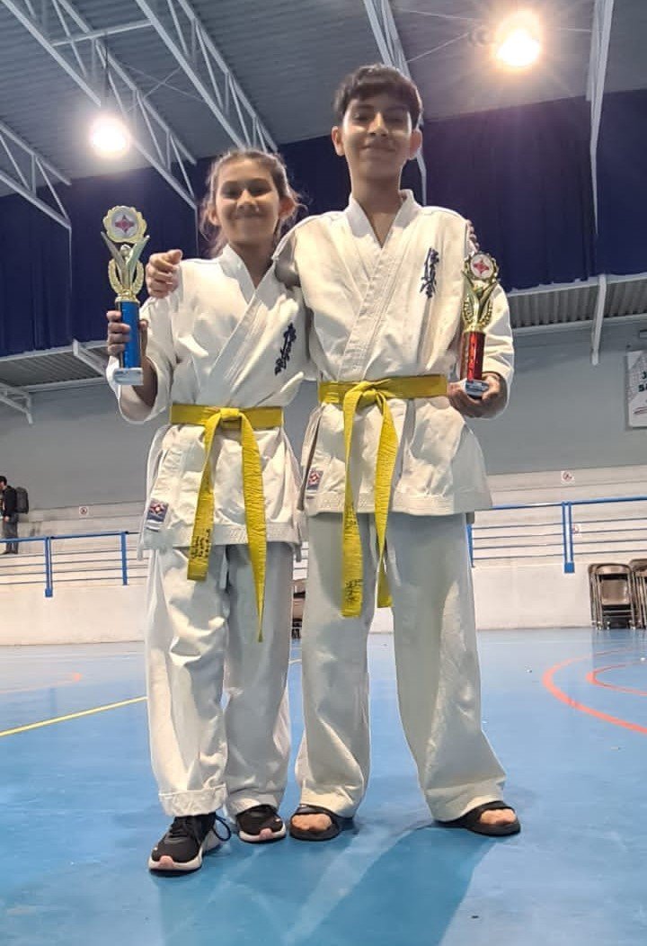 Constanza de 12 años y Darien de 14 años, ambos apasionados y comprometidos con el arte marcial del kyokushin.